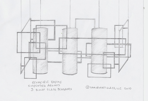 Commissioned Chandelier for private residence: 3 steel blue blown glass